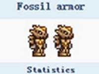 化石套装是1.3新增的套装,由头盔、板甲和护腿构成。该套装的防御加成较低,但是对于投掷类物品有属性加成,还有50%概率不消耗物品(不包括炸药和炸弹),配合骨制标枪、骨制飞刀等投掷武器使用效果不错。