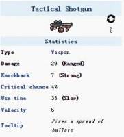 战术散弹枪非常适合用来对付成群的敌人,因为它可以发射分散的、高击退的,数量多的子弹。