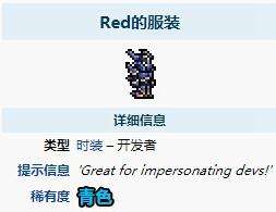 里德的服装是开发者商品,是以泰拉瑞亚发展领袖列得命名的。