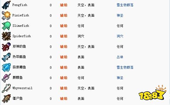 泰拉瑞亚鱼类种类属性介绍