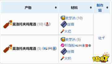 3DS版,使用10个麦芽酒,1个丝绸和1个火把,可以徒手合成10个莫洛托夫鸡尾酒。