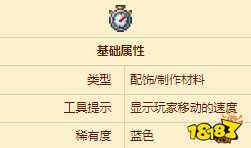 秒表是游戏中一种能够显示玩家准确速度的信息配饰。秒表放在玩家的物品栏中,就不会失去功能,但是装备到社交栏内,就会失去功能。