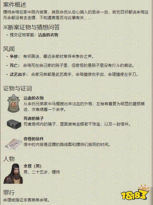 以上就是关于天涯明月刀手游余理案证据介绍的全部内容分享啦,小伙伴们如果还没完成的话只要提交以上证据就可以完成啦,希望对大家有所帮助。
