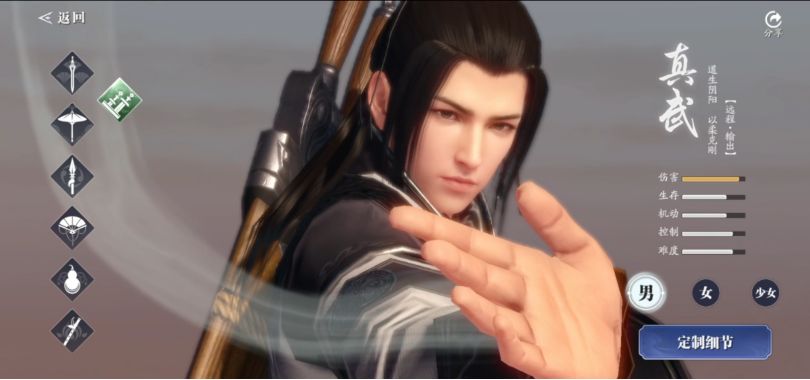 从角色界面可以看出,真武的定位是偏向输出位的。