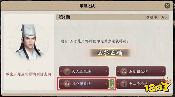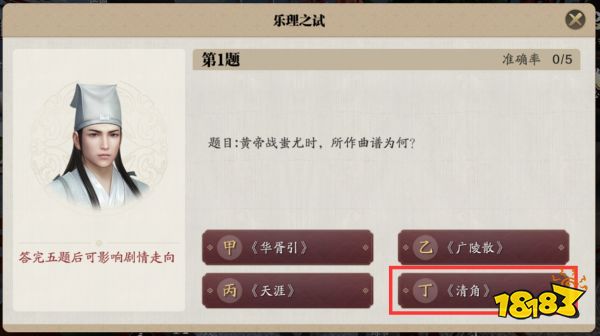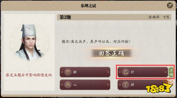 寻找完了三个任务NPC之后,回到风小雪位置,还需要跟风小雪一同参加一次模拟考试,该次模拟考试共有5个问题,问题及答案如下: