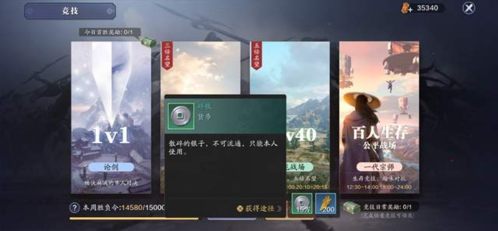 随着碎银的需求增加,现在每日竞技奖励提升为15W碎银的奖励,一周共计105W。