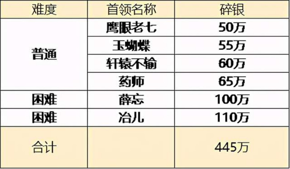 每日随机副本可以获取30W碎银,一周210W。这一部分相信所有的玩家都能获取,是我们获取碎银的常规方式。