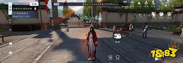 1、如下图所示,这个房子的门口站着西域商人,走过去和他对话,即可开启奇遇任务。