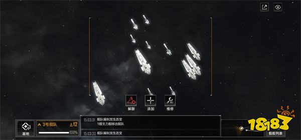 还可以之间点击舰队的战舰进入到舰队的详细画面,查看舰队的站位情况,以及进行该舰队的解散,添加战舰,维修战舰的操作,点击具体的舰船还能精准的移除单艘舰船。