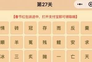 微信成语消消乐翻天是一个微信小程序游戏,属于猜成语类型的小游戏,游戏趣味性很强,但其中有些关卡的难度较高,下面小编就给大家带来了第27关的通关答案,希望对各位能有所帮助。