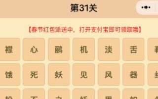 微信成语消消乐翻天是一个微信小程序游戏,属于猜成语类型的小游戏,游戏趣味性很强,但其中有些关卡的难度较高,下面小编就给大家带来了第31关的通关答案,希望对各位能有所帮助。