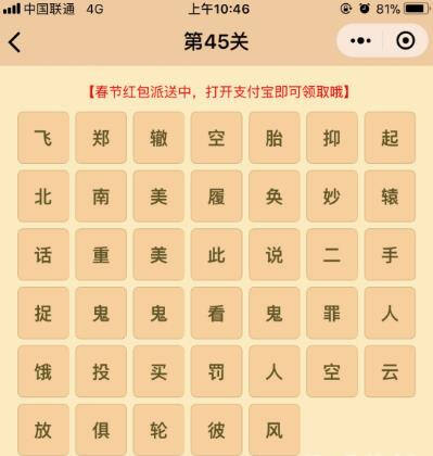 微信成语消消乐翻天是一个微信小程序游戏,属于猜成语类型的小游戏,游戏趣味性很强,但其中有些关卡的难度较高,下面小编就给大家带来了第45关的通关答案,希望对各位能有所帮助。