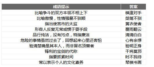 棋逢对手 桀骜不驯 黄衣使者 覆雨翻云 清清白白 心有余悸 验明正身 干将莫邪 时不我待 琴棋书画