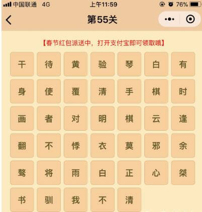 微信成语消消乐翻天是一个微信小程序游戏,属于猜成语类型的小游戏,游戏趣味性很强,但其中有些关卡的难度较高,下面小编就给大家带来了第55关的通关答案,希望对各位能有所帮助。