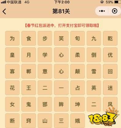微信成语消消乐翻天是一个微信小程序游戏,属于猜成语类型的小游戏,游戏趣味性很强,但其中有些关卡的难度较高,下面小编就给大家带来了第81关的通关答案,希望对各位能有所帮助。