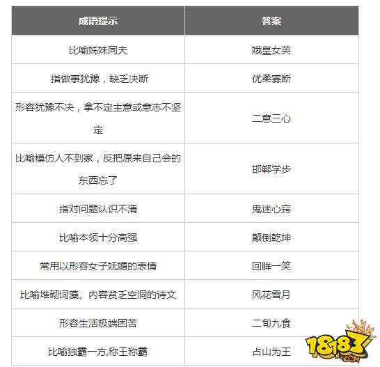 娥皇女英 优柔寡断 二意三心 邯郸学步 鬼迷心窍 颠倒乾坤 回眸一笑 风花雪月 二旬九食 占山为王