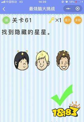 第61关答案:首先摇晃手机,将屏幕中的三个男孩摇晕,然后隐藏的星星就会出现了。