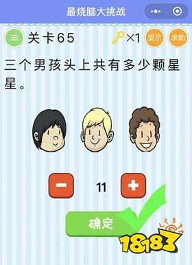 第65关答案:正确答案是11颗星星(还记得之前的61关吗,“找到隐藏的星星”就可以找到答案了)。