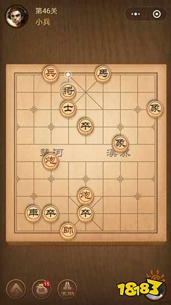 中国象棋残局是一款微信小程序象棋残局游戏。闯关一共有四个部分分别是:楚汉争霸、春秋五霸、战国七雄和三国演义,目前处在最初的“楚汉争霸”有两万多人,而其他三个闯关的却是寥寥几人,今天18183小编给大家带来的是楚汉争霸第46关的攻略。