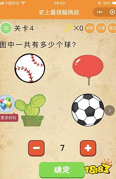 微信史上最烧脑挑战是一款非常烧脑的小游戏,最近许多小伙们在游戏解题中伤透脑筋还是卡在某个关卡,为了解决小伙们烦恼,今天18183小编特意给大家带的微信史上最烧脑挑战的关卡攻略。