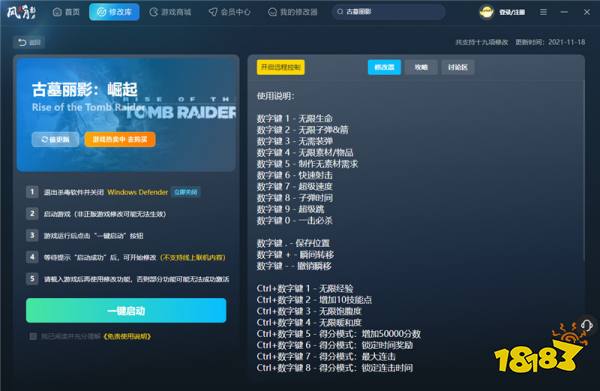 虽然不同开发者提供的具体功能名称略有差异,但主流《古墓丽影:崛起》十九项修改器通常包含以下典型选项: