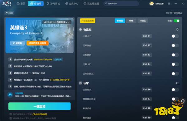 作为Relic Entertainment经典即时战略系列的最新力作,《英雄连3》(Company of Heroes 3)延续了该系列对二战战场的高度还原、战术深度与单位细节的追求。游戏以意大利和北非战场为背景,融合动态战役地图与小队级实时战斗,为策略爱好者带来了极具挑战性的指挥体验。然而,对于部分玩家而言,资源限制、单位损耗或高难度AI可能成为沉浸战术乐趣的障碍。为此,一款专为《英雄连3》打造的十四项修改器应运而生,为单人战役与自定义对战注入前所未有的操控自由。