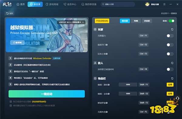 无敌模式 启用无敌模式后,你的角色将在监狱环境中变得坚不可摧,免受敌人的攻击和环境伤害。让你可以更自由地探索和实验不同的逃脱策略。