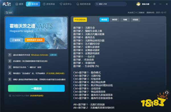 以下是《霍格沃茨之遗》三十三项修改器的主要功能分类与典型用途: