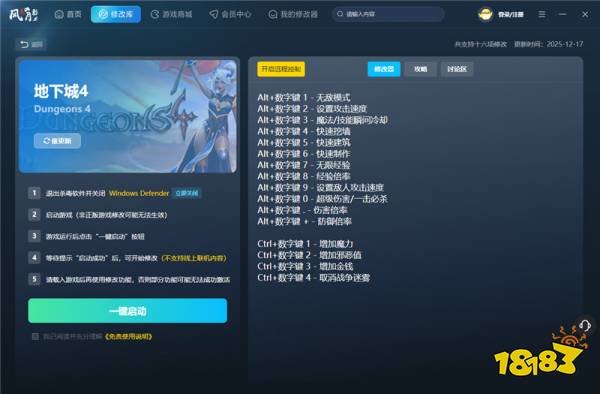 以下是《地下城4》十六项修改器的主要功能及其用途: