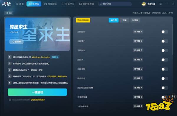 在浩瀚宇宙中挣扎求生,在异星荒野中建造基地、对抗极端环境与致命生物——这就是由10 Chambers Collective开发的多人合作生存游戏《翼星求生》(ICARUS)带给玩家的核心体验。然而,对于许多只想专注于探索、建造或剧情推进的玩家来说,严苛的生存机制、漫长的资源收集流程和频繁的死亡惩罚,有时反而成了享受游戏的障碍。为此,一款功能强大的辅助工具应运而生——《翼星求生》二十七项修改器,为单机或私人服务器中的玩家提供了前所未有的自由度。