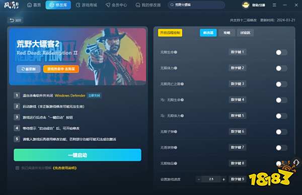风灵月影修改器能帮助玩家更自由地探索荒野大镖客2这个广袤而细致的西部世界。无论是想专注于剧情体验,还是尽情探索游戏世界的每一个角落,这款修改器都能提供恰到好处的支持,让你真正成为西部荒野的主宰者。