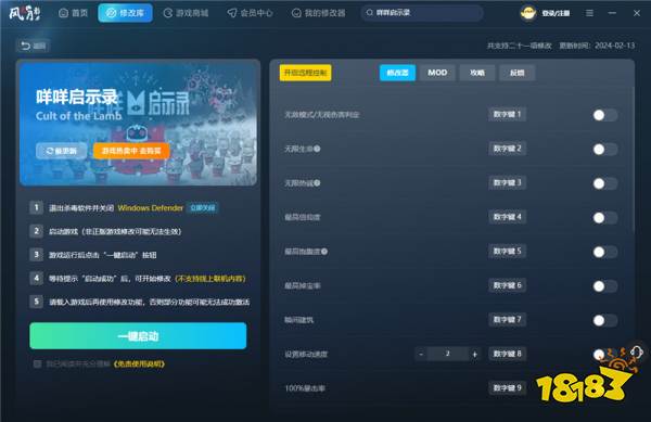 《咩咩启示录》(Cult of the Lamb)是由Massive Monster开发、Devolver Digital发行的一款融合了“经营邪教”与“地牢战斗”的独特独立游戏。自发布以来,凭借其可爱的卡通画风、黑暗幽默的剧情以及高度自由的养成系统,迅速在全球玩家中积累了极高人气。为满足不同玩家对游戏节奏和体验的个性化需求,第三方开发者推出了功能丰富的修改器,其中以支持二十一项功能的版本最为全面和实用。