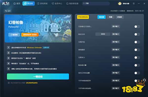 这款修改器功能极为丰富,几乎涵盖了《幻兽帕鲁》的全部玩法维度。以下是其核心功能分类与亮点:
