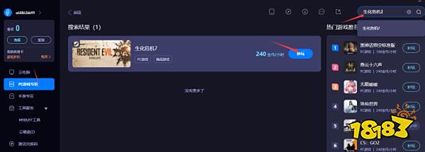 启动云电脑【点击进入】,在客户端右上角搜索“生化危机7“游戏后,点击秒玩即可,之后选择相应的电脑配置后即可开始游戏。在选择相应配置后视情况可能需要排队,在排队后即可正常游戏。