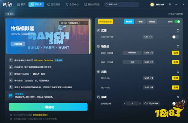 为了让玩家能更好地探索和享受牧场生活的乐趣,《牧场模拟器》推出了官方六项修改器,这些功能覆盖了从基础资源管理到高级操作调整等多个方面: