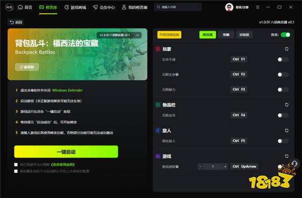 从官方渠道下载 确保只从官方或可信来源下载“背包乱斗福西法的宝藏六项修改器”,以避免潜在的安全风险。