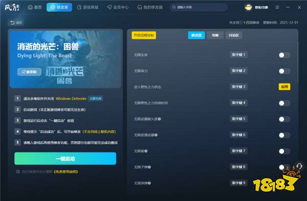 《消逝的光芒》系列自《2》起强制启用BattlEye反作弊系统,即使在单人模式下也可能检测第三方工具。因此,使用修改器前务必:
