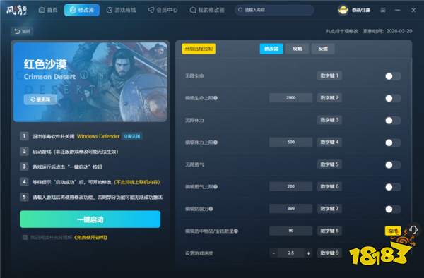 作为韩国珍珠艾比叶(Pearl Abyss)继《黑色沙漠》后的又一野心之作,《红色沙漠》以其宏大的开放世界、残酷的生存机制和史诗般的战争场面备受瞩目。然而,高难度的生存挑战、繁琐的资源采集以及硬核的战斗数值往往让部分玩家望而却步。此时,“十项修改器”成为了许多单机体验派玩家的“秘密武器”。本文将深度解析这款修改器的十大核心功能,探讨它如何将一款“受苦”的生存动作游戏转化为“爽游”,同时剖析其在单人剧情体验与在线模式边界上的严格界限。我们将指导玩家如何利用这十项能力,从一名在荒野中挣扎的流亡者,瞬间蜕变为掌控塔克拉大陆命运的“神”。