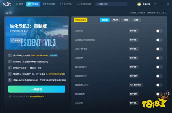 严禁联机:虽然《生化危机3重制版》主要是单人游戏,但其包含“抵抗计划”(Resistance)等多人模式(注:该模式已于2021年停止服务,但若未来有类似联机内容或排行榜功能),绝对禁止在多人模式中使用修改器,否则将面临封号风险。