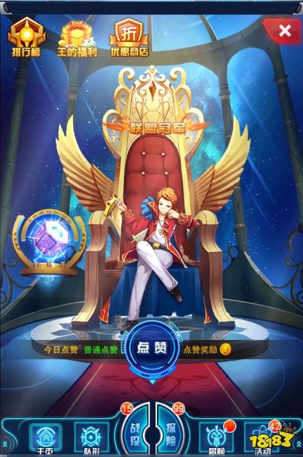 6、联盟冠军,可设置每天全服玩家点赞膜拜时获得的金币奖励