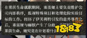 经历了莱茵生命实验室著名事故“伊芙利特”事件后,塞雷娅与矿石病研究者赫默之间产生了不可调和的分歧,最终塞雷娅选择以暂时离开莱茵生命作为这一分歧的结果。但结果并不是结束,她真正的计划只能留到游戏正式剧情中见分晓了。