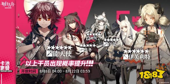 明日方舟8月8日常驻寻访池更新,能天使小火龙凛冬初雪白金up。从游戏开服第一次的能天使up以来一直都没有up过。这样一些刀客塔非常苦恼。不过马上她就要来了,小伙伴们准备好你们的合成玉了吗?