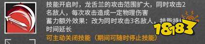 二技能是一个很看发挥时机的技能,可以随时关闭,正常开启会提升龙舌兰的攻击范围,且同时攻击两人,如果是蓄力开启,则能同时攻击三人,技能的持续时间也会延长。