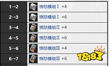 需要材料:愤怒模组Ⅰ、愤怒模组Ⅱ 、愤怒模组Ⅲ三种系列的材料,越后面需要材料越多。