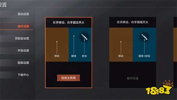 2、点击第一个“自定义布局”,进入自定义布局界面,将原本位于屏幕右上方的设置按钮拖拽到屏幕的中间位置,根据自身的需求调准设置按钮的位置和大小遗迹透明度。