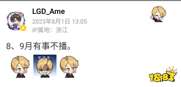 亚运会DOTA2项目选手ame在b站发布动态表示自己8、9月有事,无法直播。同时,在虎牙直播的DOTA2项目选手maybe也发出了类似的通知。