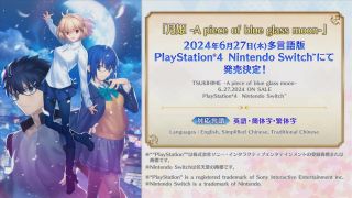 《月姫 -A piece of blue glass moon-》中文版宣布将于6月27日发售,游戏将同时登录PS4/Switch平台,同时支持简繁体中文以及英文。普通版与限定版将会同步发售,限定版内画册为中文版本。