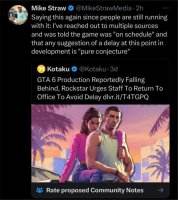 然而,随着这一话题的持续发酵,知名游戏媒体Insider Gaming的高级编辑Mike Straw在推特上出面辟谣。他明确表示,自己已经与多个消息源进行了沟通,他们均向他证实游戏的开发“正在按计划进行”。Mike Straw强调,任何关于游戏开发阶段延迟的说法都仅仅是“纯属猜测”,并未有确凿的证据支持。