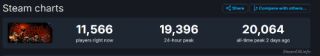 《暗黑地牢》的实时在线玩家人数已飙升至接近两万人,达到19396人,一举超过了2017年曾经创下的最高在线人数纪录19357人。