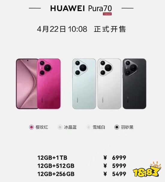 有羽纱黑、雪域白、樱玫红、冰晶蓝四款配色可选,后壳采用玻璃材质。